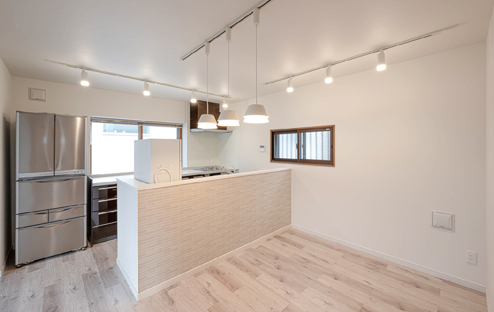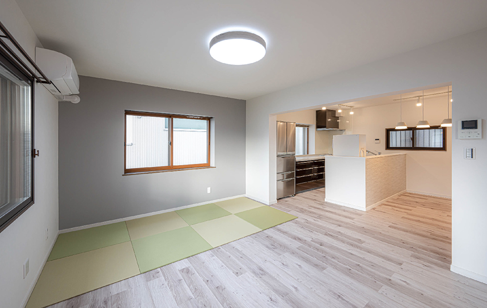間仕切り壁を撤去し、広く開放的なリビングに。小さなお子様が遊べる空間を確保しました。
